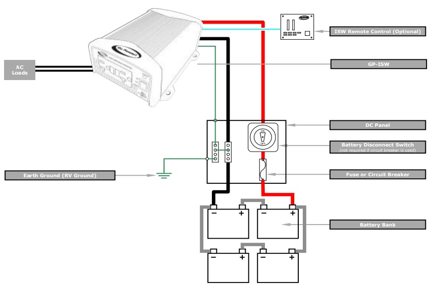 Fíor 3 . Léaráid scéimreach iomlán de shreangú agus talamh taoibh an inverter DC (PE/Earth Ground)